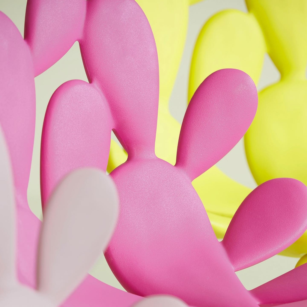 Qeeboo는 끊임없이 새로운 프로젝트를 개발하고, 프로세스를 최적화하며, 다양한 재료로 작업하여 기술을 지속적으로 개선하는 데 집중하고 있습니다. 이러한 노력 덕분에 Qeeboo는 가스 보조 사출 성형으로 제작된 의자나 회전 성형 기술을 극대화한 대형 조각 오브제와 같은 정교한 제품을 개발했습니다. 높이가 2.65미터에 달하는 'Giraffe in Love'나 회전하는 팔을 가진 'Kong XL'은 모두 Qeeboo가 많은 사람들에게 도달할 수 있도록 세심하게 개발된 독특한 제품입니다.