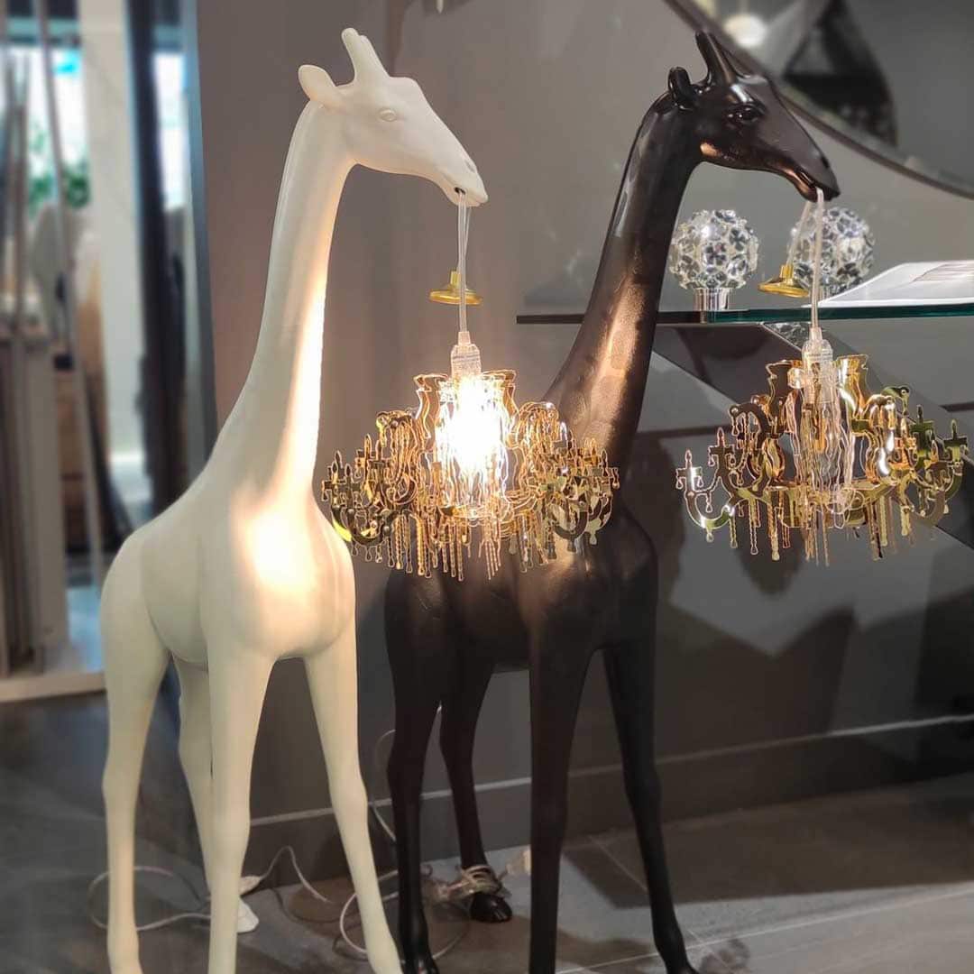 마르칸토니오의 기린 컬렉션은 클래식한 마리 테레즈 스타일의 몽환적인 샹들리에를 들고 있습니다. 사랑에 빠졌지만 마음이 머리에서 멀어 아직 그것을 알지 못하고 가벼운 마음으로 살아가는 아이러니를 가진 기린입니다. XL, M, XS 및 벽 램프 버전으로 제공됩니다.