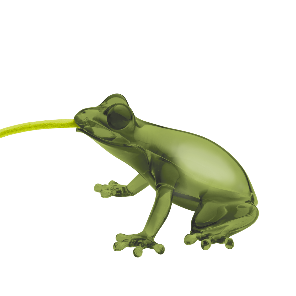 Marcantonio가 디자인한 Hungry Frog는 개구리 모양의 작은 탁상/벽등으로, 개구리가 소화기 내에서 빛나는 전구를 먹은 모습을 갖고 있습니다. 개구리 입에서 나오는 전구에 연결된 180cm 길이의 전선은 통합된 스위치가 있는 천으로 덮여 있어 어떤 코너에도 배치할 수 있습니다. PMMA로 제작되었으며 다양한 색상으로 제공됩니다.
