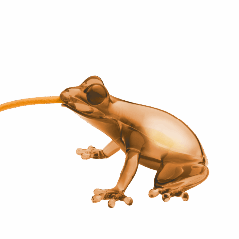Marcantonio가 디자인한 Hungry Frog는 개구리 모양의 작은 탁상/벽등으로, 개구리가 소화기 내에서 빛나는 전구를 먹은 모습을 갖고 있습니다. 개구리 입에서 나오는 전구에 연결된 180cm 길이의 전선은 통합된 스위치가 있는 천으로 덮여 있어 어떤 코너에도 배치할 수 있습니다. PMMA로 제작되었으며 다양한 색상으로 제공됩니다.