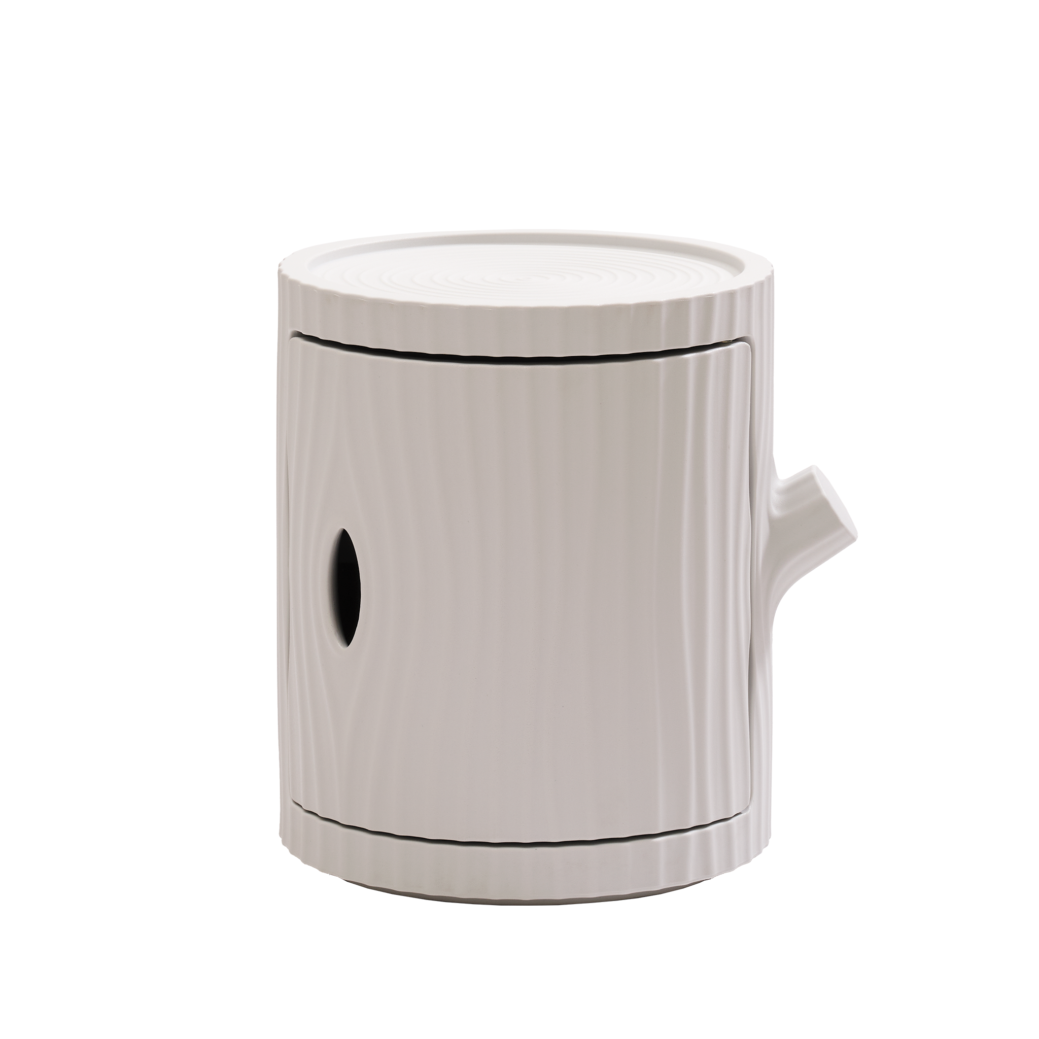 나무 기둥을 모티프로 한 Tronco는 수납과 디스플레이를 동시에 만족시키는 다기능 컨테이너입니다. 100 % 재활용 폴리에틸렌으로 제작돼 가볍고 견고하며, 내부에는 소품을 깔끔히 보관하고 상단에는 오브제를 올려둘 수 있습니다. 스택 가능한 구조라 여러 개를 쌓으면 조형적인 ‘트리’ 형태가 완성되어 옷이나 타월을 걸어두는 행어로도 활용 가능합니다. 침실·욕실·거실·테라스 등 어떤 환경에도 자연스럽게 어우러지며, 필요에 따라 이동 바퀴와 자석 결합 시스템(높은 컬럼 연출용)을 옵션으로 추가할 수 있습니다.